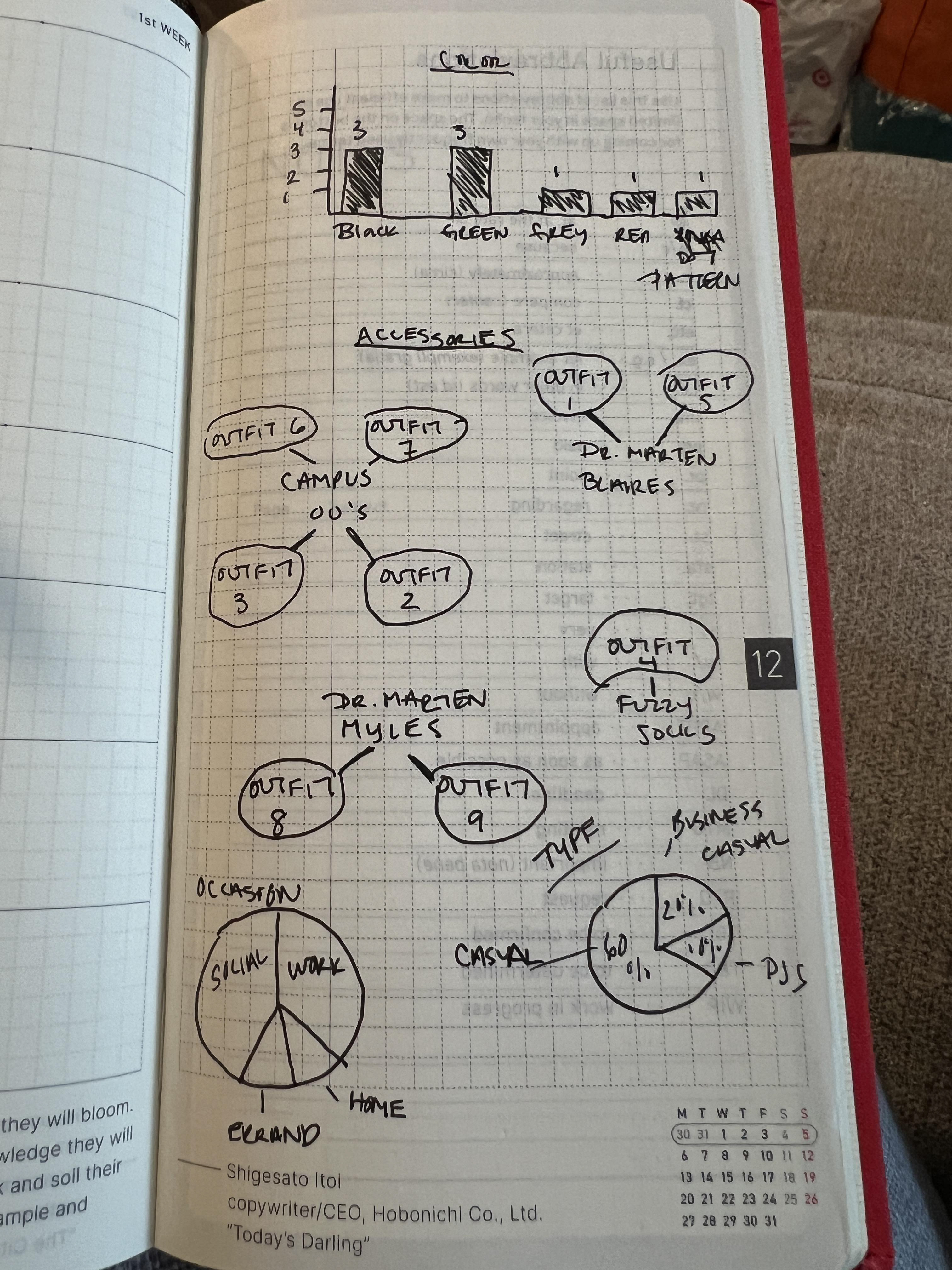 This project approaches the Dear Data project by Giorgia Lupi and Stefanie Posvec through a human-centered lens. I paired up with a high school student and together we collected our own data, summarized and encoded/decoded creatively. The goal of this study is to broaden participation in data science for creatives.